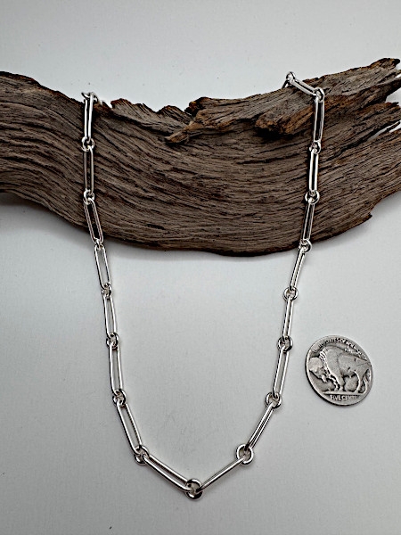 A bold alternating link pattern that gives this chain its signature rhythm and movement. The mix of longer and shorter links creates a strong, eye-catching look with a clean, modern edge. 14 Gauge Oxidized – 25" $435 Distinctive. Balanced. Effortlessly cool worn alone or layered. Order Now |