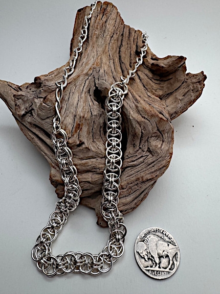 Handcrafted sterling silver featuring a classic two-in-one chain mail weave accented with twisted links for added detail and shine. Bold texture with beautiful movement. • Necklace: 20" – $385 • Earrings: 2" - $195 A strong statement set with timeless appeal. Order Now |
