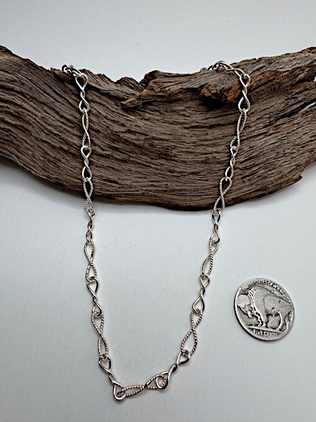 Our most popular chain for a reason. The Twisted Link Chain features a striking twist infinity design that catches the light beautifully and adds effortless dimension to any look. Each link flows seamlessly into the next, creating movement, shine, and a bold yet timeless feel. 20" length - 20 gauge (our finest): $170 Whether you prefer a delicate everyday layer or a thicker, more substantial statement piece, this chain delivers versatility and durability without compromising elegance. Wear it alone for a clean, confident look or layer it with your favorite pieces for added texture. A true staple — strong, eye-catching, and made to be worn daily Order Now |