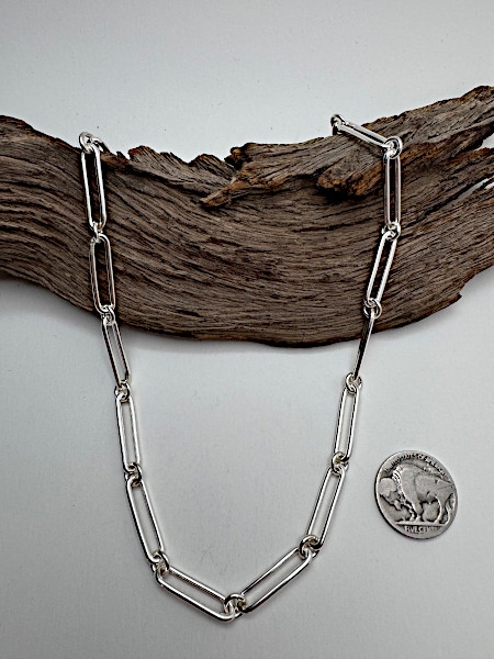A bold alternating link pattern that gives this chain its signature rhythm and movement. The mix of longer and shorter links creates a strong, eye-catching look with a clean, modern edge. 14 Gauge Oxidized – 25" $435 Distinctive. Balanced. Effortlessly cool worn alone or layered. Order Now |